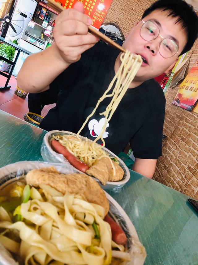 心心念念的牛肉板面,把当时为了省钱舍不得吃的配菜全都点了一边,大满足