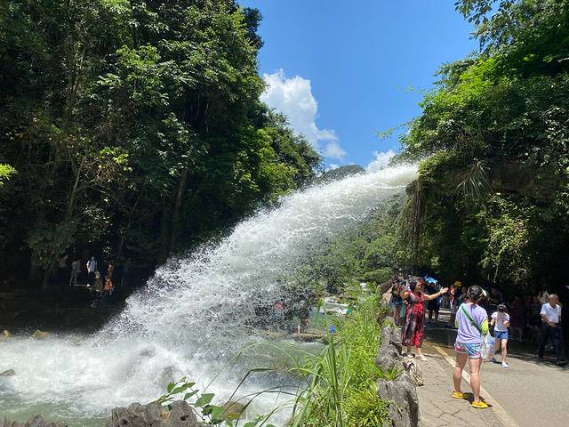 这是大瀑布,景区门口坐车1号口直奔大瀑布景区。这是最精华也是最远的景区,一定要先玩儿这里。水帘洞就是在这个瀑布的后面,但是我们来的时候因为水太大给封闭了。去水帘洞一定要准备雨衣!