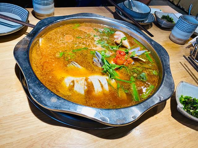 在大众点评上找到的必吃第一名,老凯俚酸汤鱼。飞机落地租车开到省府店,门口就有地方停车,每小时8块。酸汤不愧是“酸”,味很酸很冲,有点吃不惯。不过是贵州的非物质文化遗产,还是有必要尝一尝的。