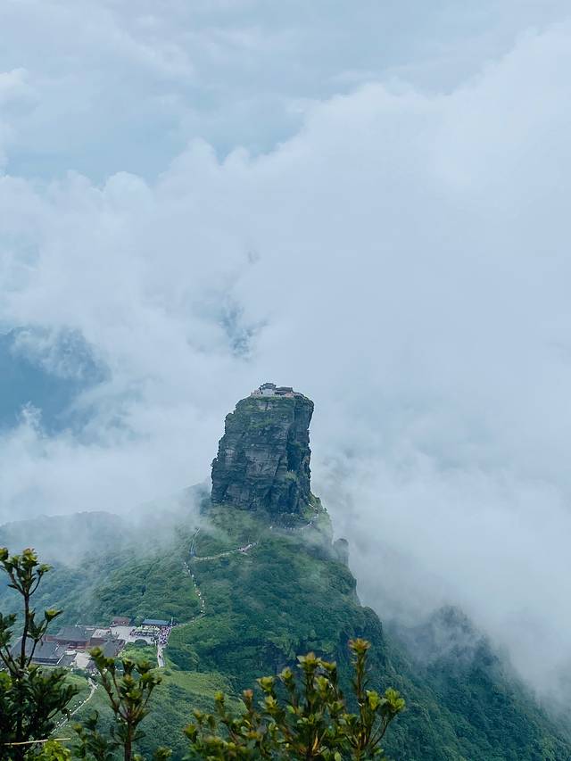 从蘑菇石继续走,有“老金顶”和“红云金顶”两条路。老金顶路险,比较有探索的意思。红云就是陡,上下台阶。图片是我爬到老金顶上拍的红云金顶