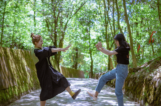下了索道,我和小伙伴途经很有羌族历史色彩的尔玛古道,古道里凉爽寂静,两旁的植物郁郁葱葱,忍不住和小姐妹不停地拍照。