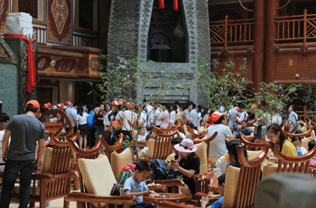 乘坐索道上山,到达西羌酒店,酒店人员穿着羌族特色服饰,酒店大厅已经有不少前一天晚上住宿的游客了。西羌酒店被评为来九皇山最值得一住的酒店,房价也很亲民仅需200+,整个装修风格带着浓郁的羌族特色,晚上酒店广场还可以感受萨朗晚会。不过这一次我打算去体验一盘星空露营,所以就没有选择,有时间的朋友真心建议你们,第一天游前山晚上住在西羌酒店,感受羌族特色,第二天游后山晚上在星空下露营,醒在云朵里。真的不要太舒服!