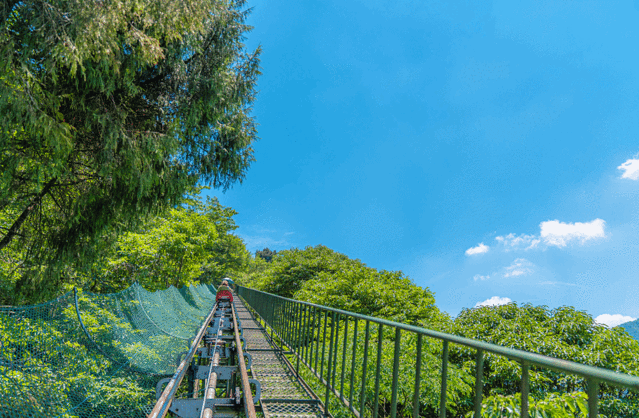 作为吃货真的抵挡不住美食的诱惑,所以决定在酒店旁的小吃店吃了饭再去云中农场,当地的腊排骨,腊肠,我一个人就吃了几大根,稍微有点点咸,味大的朋友肯定没事,被烟熏过一点也不油腻。从酒店出发可以乘坐高空滑道上山,不仅节约时间,还节省不少体力,老人小孩都可以坐!对于有点恐高的我,刚开始还是有点害怕的,不过滑道两侧是葱茏的树木,减少了我的一丝紧张感。