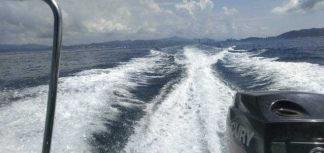 从双月湾海边俱乐部乘快艇到浮潜点,大概15-20min