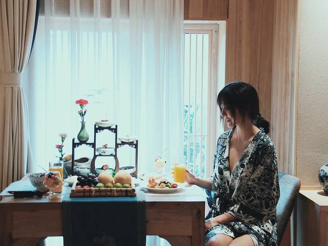 喜欢以桐木为墙、棉麻为帘的和风式客房,喜欢超大的洗漱台和精致的浴袍,舒适的床品让人躺下就想赖一天的床。