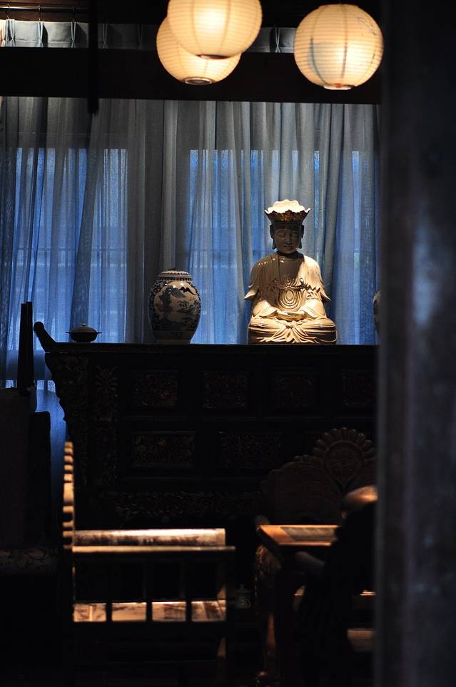 另外,酒店顶楼还有一个茶室,里面放了很多老板从各地搜集回来的古董家具,一张太师椅要几万块呢,实在很是精致!