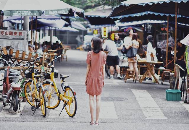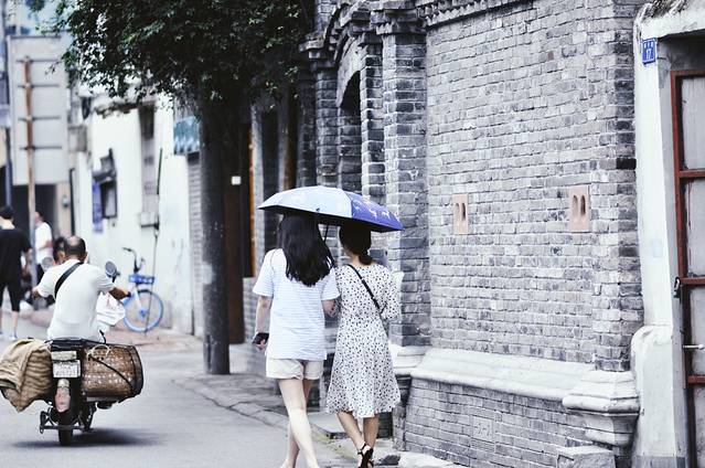 青灰色砖瓦的旧房子在雨中散发着潮湿久远的气息,小店里飘来各色音乐声,路人的谈笑声,单车的叮当声,小贩的叫卖声,拼凑出一种简单而柔软的市井气场。