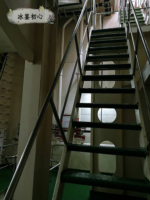 从停车区前往4层的客舱,相当于我要爬4层楼,这是船内部的场景,内部充满着各种咸鲜味,锈色斑驳。