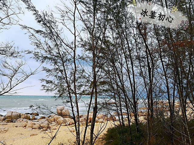 没看见,丁点没看到海水浑浊伴随着着大风大浪,绝了,别说游泳,就在海边散步都有点心慌。咨询了前台,得知中角那边有滑溜溜的石头,看看天,还是决定出发。
