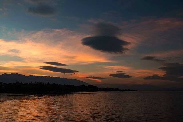 傍晚在洱海边看日落