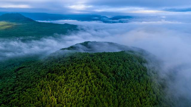 满山粉红如霞的🌸野樱花,金黄的落叶杉层次分明,一山四季,樱花盛开,吹落的樱花瓣也在泡池中荡漾,颇为惬意