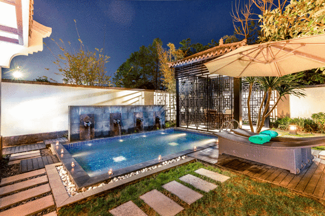 🍃坐落在幽静山谷中,置身其间,身之所触的是温泉水滑洗凝脂的灵动