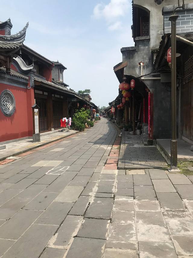 酒店用完早餐(早餐时间07:30-09:30),陪我家宝宝在酒店室内的儿童游乐场玩了一上午,后出发至新场古镇,途中大约半小时左右的车程。古镇是大邑县西部最早的建制镇,从新场古镇四个字,我们就会感觉到这是一个非常特殊的古镇,这个古镇最大的特色用四个字来形容就在于它的“亦古亦新”。古,是指新场有着深厚的历史文化底蕴。它始建于东汉末年,距今已有近两千年的历史。新场,位于山区、丘陵和平坝的交融地带,古称思安寨,因其东距成都,西邻邛崃,南有水路通新津,北可达西岭雪山,自古以来就是兵家必争的关口要地和客商云集的商贸重镇。数百年来,这里的木材、煤炭、茶叶、大米和杂粮等物资的吞吐量极为壮观,素有“五大市场”之称,是茶马古道和南方丝绸之路的重镇之一。直到现在,新场仍然保留着传统的赶集习俗,每逢2、4、7、10,附近山区的农民和百姓都会挑着箩筐、背着背篓来这里赶集,所以也有人称新场是一场“南方丝绸之路上千年不散的集市”。走进新场古镇,映入眼帘的是一排排老式建筑,可能我们去的那天不是赶场,整个场镇看起来并非像黄龙溪古镇那样繁华热闹,商业气息也不浓,时不时的看见几个开门营业的小店。外围有条河环绕,坐下来喝喝茶、聊聊天还是不错的。古镇最有特色的小吃为奶汤面,即用新鲜猪骨、猪蹄、香肘、鸡炖成香味浓郁的奶汤,将其盛入碗内,配以佐料,加入煮熟的水下面,价格也不贵。