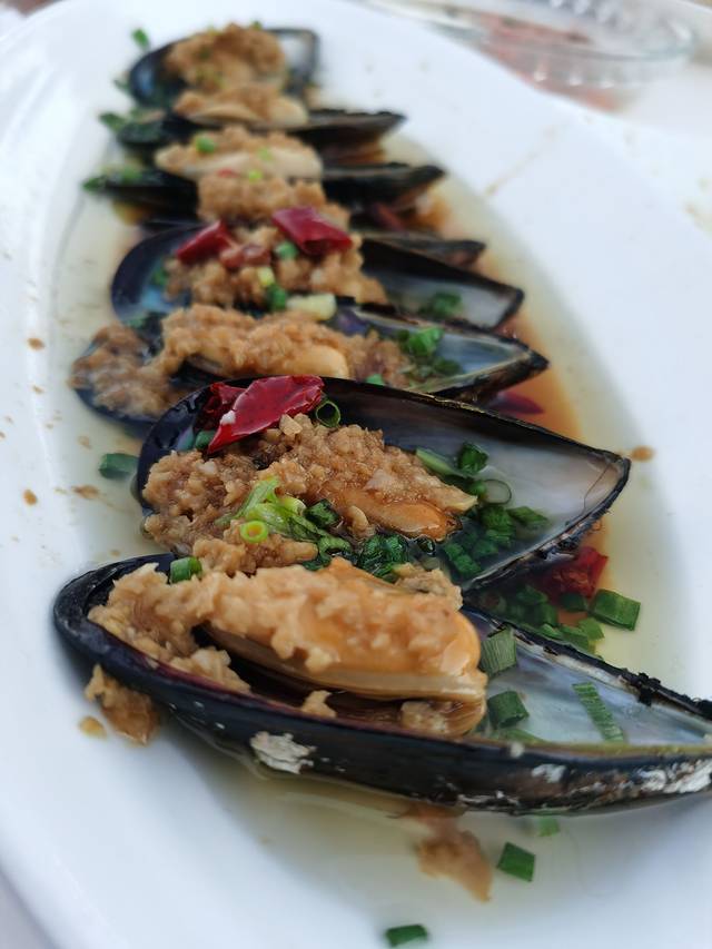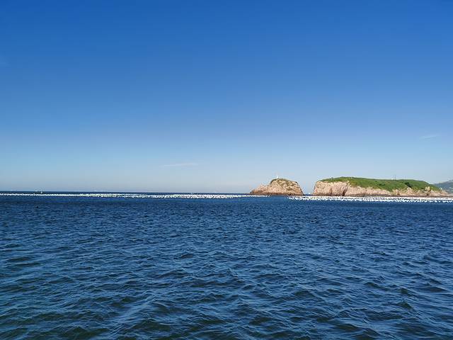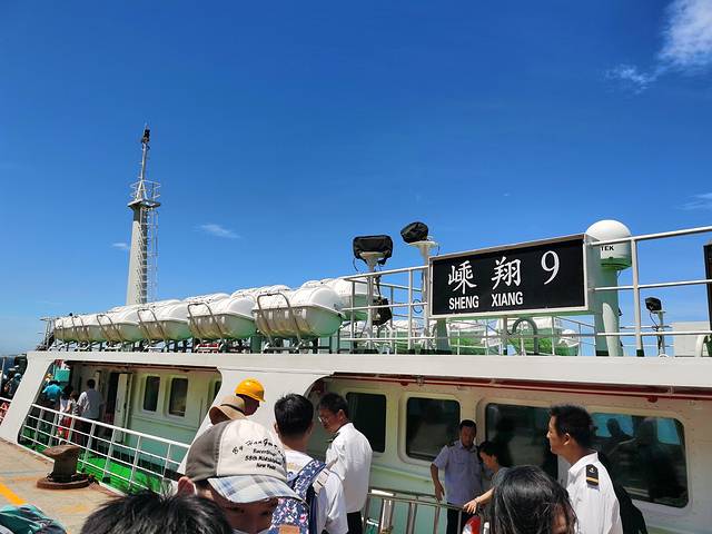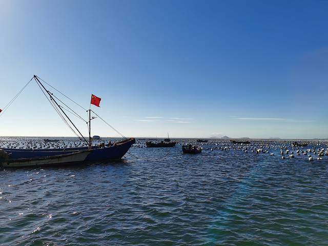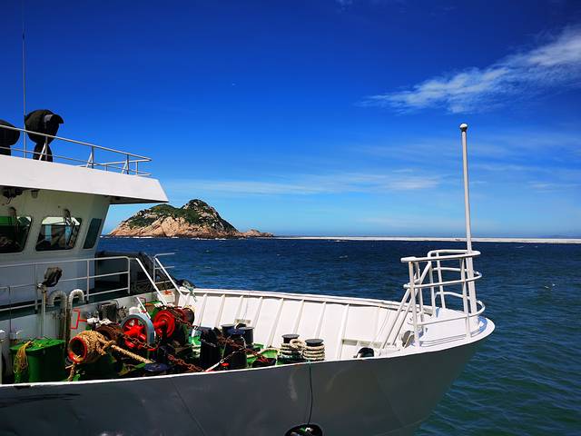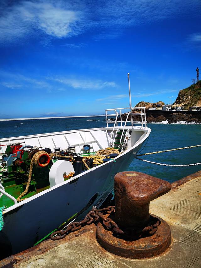 8:40开船,11点左右到达枸杞岛干斜码头。140块钱的船票,坐了两个小时的过山车和海盗船,挺划算的。下了船,看到这么蓝的天和海水,已经开始兴奋了。客栈提前给订的出租车,上车10分钟就到客栈。