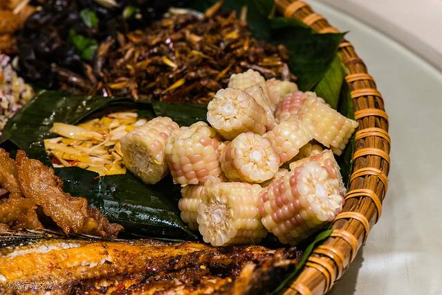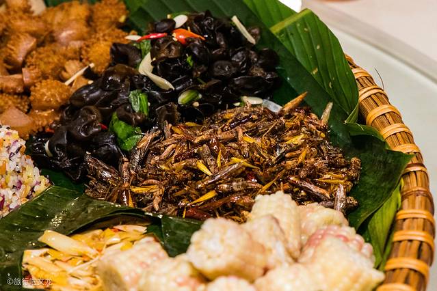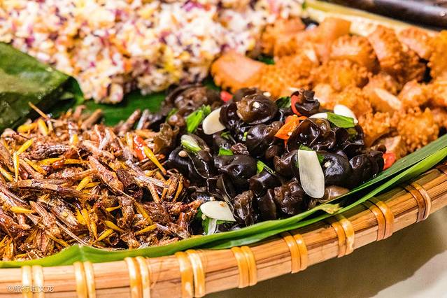 这样别出心裁的菜品,无论是在原料的选择还是烹饪的制作,再到造型的排盘,各个细节都要做到精致和耐心。还有 云南 特别有特色的虫子,哈哈,小时候抓过的蚂蚱。