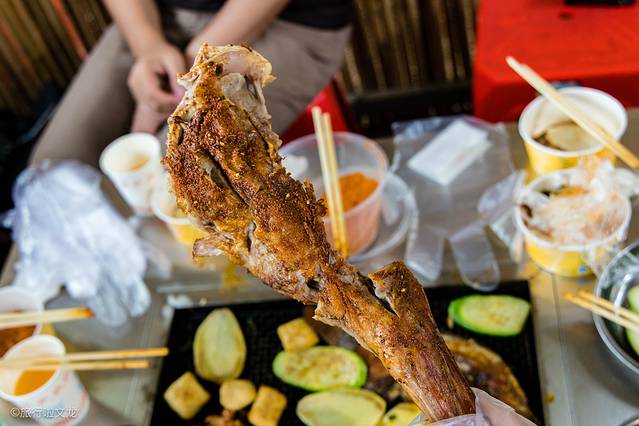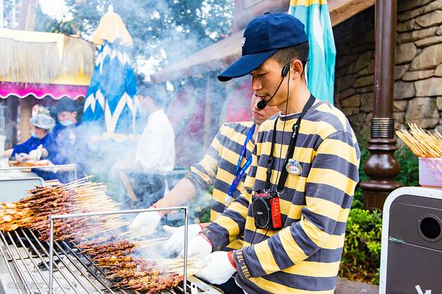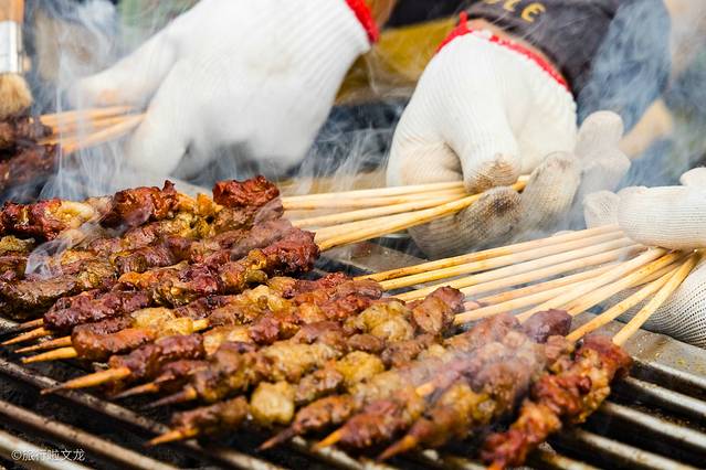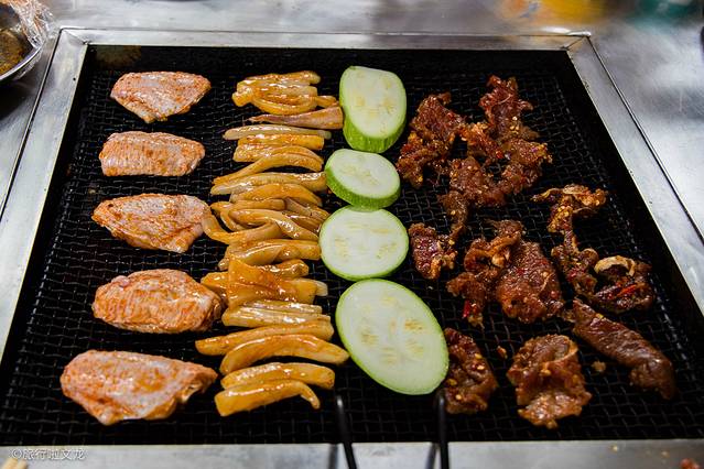 还没到时间这个活动热度就十分的高,但是我却被旁边的滇国烧烤所吸引了,大老远的就听到了烧烤的飘香,这个滇国烧烤还是相当的出名的,看来这里买的游客数量就可以很好的看出,我当然是不能错过了。烤肉在烤架上烤着,看着很有食欲。