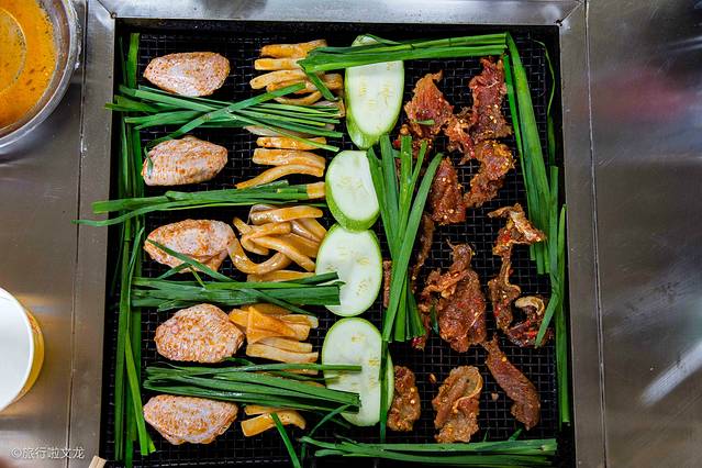 当然我们也不可能只吃烤全羊,我们还烤了很多其他的东西,像鸡翅,辣子鸡块,小瓜,一些小肠,这些味道都是非常不错的,然后再加上一些韭菜看起来真的非常的不错,同时还有阵阵的香气向我们袭来,真的是色香味俱全,这一次的烧烤真的是一次非常不错的体验,这里的烤全羊味道也很不错,相比较于草原的烤全羊这里的烤全羊丝毫不差,很棒的一次烧烤体验。