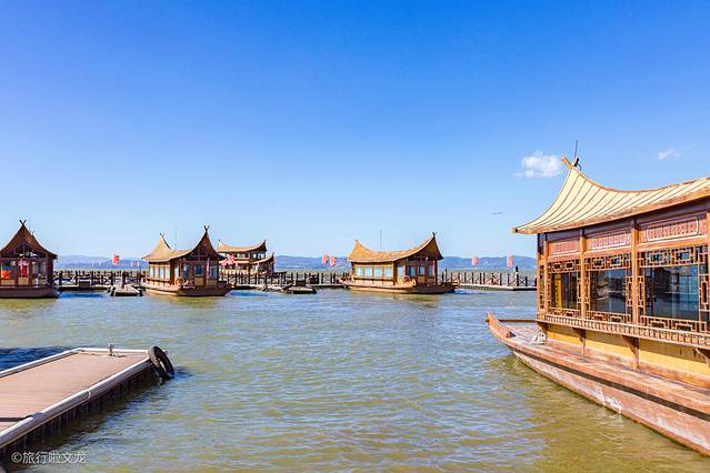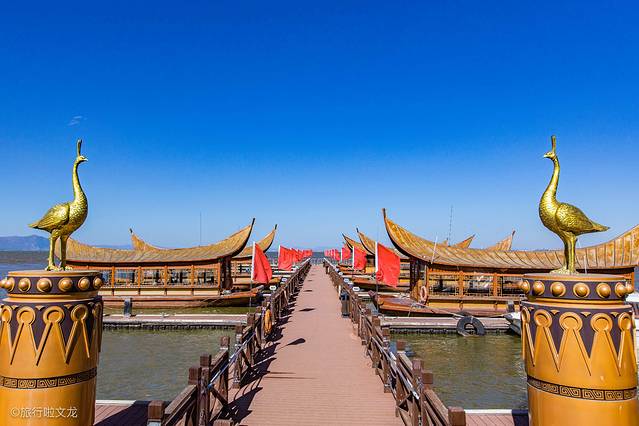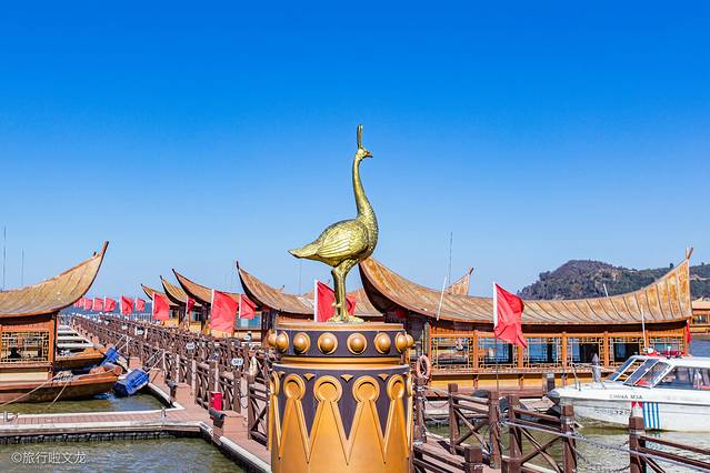 这里不光设计新颖,而且在建筑上也是偏向于现代化与古风相结合。这样的大码头和侯船的大厅相结合着,也在水面上有倒影,成为一番美景。游客们刚来的时候,这里给人的感觉便是千帆点点古滇渡口流传着历史的遗风。