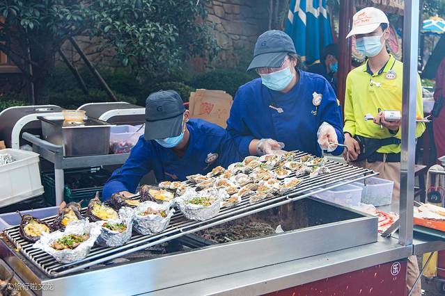 嘉年华能烤的东西还是相当的多的,肉类只是其中之一,茄子也可在炭上烤,色系还不错,还有一些海鲜之类的。当然我拿着香喷喷的鱿鱼和烤鸡,让同伴将自己现在满足的状态记录下来,趁着天还没有黑,好好的饱餐一顿,能精神饱满的去参加啤酒嘉年华这个活动。