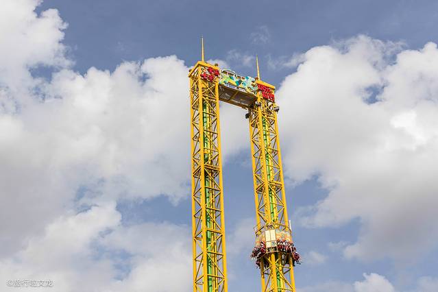 黄色为主色的双塔太空梭,这个娱乐项目还是相当的刺激的。其实你上升的过程中并不害怕,还可以俯视着这个乐园的美景。但是跌落的时候会停顿一下,给你一个下落的准备时间,但是是真的极速跌落。让你只能拼命的尖叫,这样反而可以缓解其紧张的情绪。在结束之后就会感到回味无穷。大摆锤是让你体验旋转的快感,在高空中大声尖叫缓解情绪。