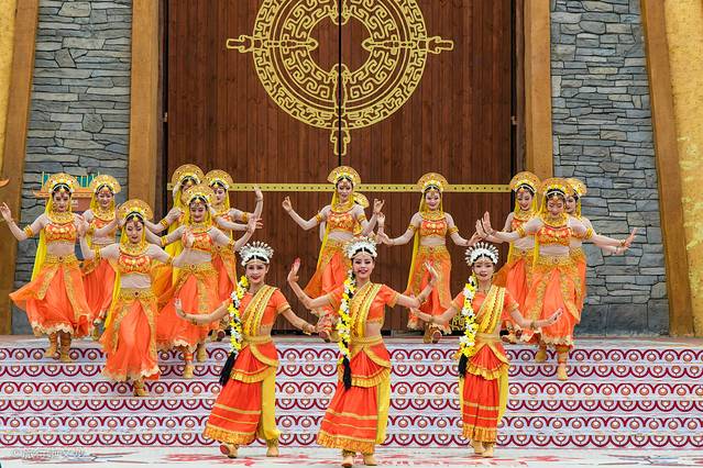 这个剧场的造型有着 印度 建筑的风格,也掺杂着民族的特色,在这里表演是不错的地段,他们也是经过专业的培训,展现给我们的舞蹈也很有特点,这样男女搭配的舞蹈很有看点。