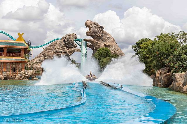 这个 虎跳峡 激流勇进是过山车和滑道漂流的完美结合体,两个硕大的虎头造型,相当的有特点。你在体验了过山车的失重过后,小船就直接冲入河里,溅起了很高的水花。相当的刺激和有趣。你在游玩的过程中,会有一些的水花溅在自己的身上,但是也没太 大关 系,这样的天玩的时候是很凉爽的。