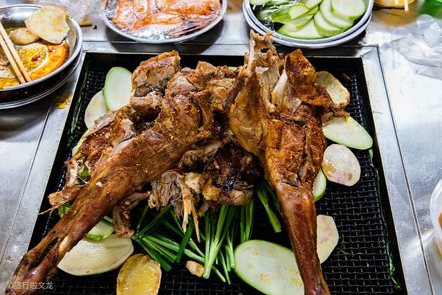 沉浸在体验的快乐中,到了中午我们就到了吃饭的时候了,我们就去了这里非常有特色的烧烤区来尝一下这里的烧烤,吃烤全羊,外加两道烧烤套餐,这里的烤全羊是非常的出名的,香喷喷的烤全羊加上味道不错的烧烤调料,吃起来特别的香,而且它的块头还是挺大的,就看这一个羊腿,就已经是特别大了。