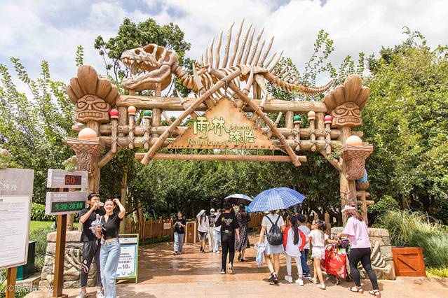 这个乐园有好多的项目,所有项目开放的时间也是有规定的。有雨林探险。洪荒石锤。 虎跳峡 。童梦世界等等,就不一一举例了。但是还是想说一下童梦世界,它给我的印象很深,主题园是植物元素和民族建筑构成的。很适合低龄段的儿童去游玩。所以有小孩的游客可以在这里陪同小孩游玩。里面的旋转木马和转转杯都可以享受欢乐的时光,此外还有一些带来快乐的项目。