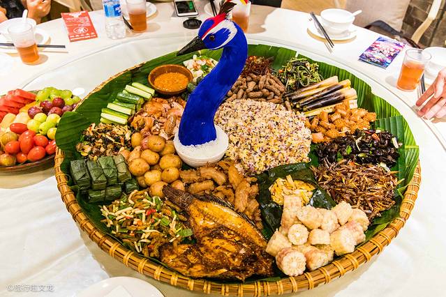 晚餐品尝了 云南 特色美食孔雀宴,上这道菜的时候就迫不及待的想将它记录下来,真的太好看了。这样孔雀的造型周围摆上不同的菜,而且荤素得当,这是真的大有口福了。