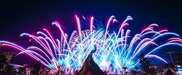 烟花在夜空绽放的美丽映着欢乐世界园区的灯光,让这个夜更加迷人了。甚至让人感到快乐而惆怅,真得舍不得离开呀。