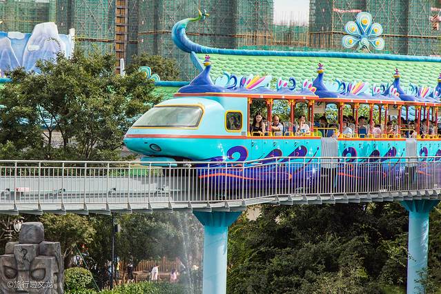 小火车的设计是有孔雀的造型也具有民族文化的特色。坐在上面可以很好的游览这个乐园的风景。小火车在平缓的轨道行驶着,十分的惬意,以上面的刺激项目比起来,坐在这个小火车上可以放松一下自己的心情和观赏美景。