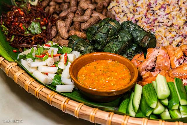 这个孔雀宴菜品味道还是很不错的,荤素合理的搭配,很久没有见过这样精致的菜品了,彩色的饭团味道很鲜美,这里灵魂酱汁我觉得很有 云南 特色的重口味,会更浓烈咸和辣,这个分量还是很足的。