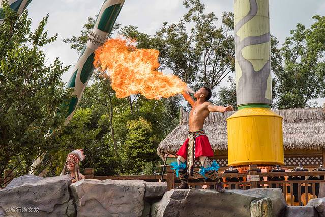 这一刻民族的魅力,无声地感染你。 你还可以欣赏到口吐火焰的表演。大鼓的设计也富有民族特色,敲响大鼓的人也是精神抖擞。
