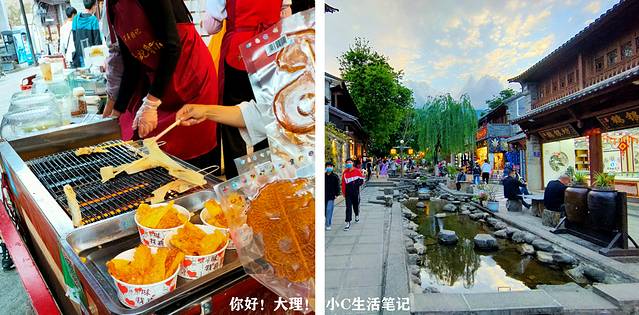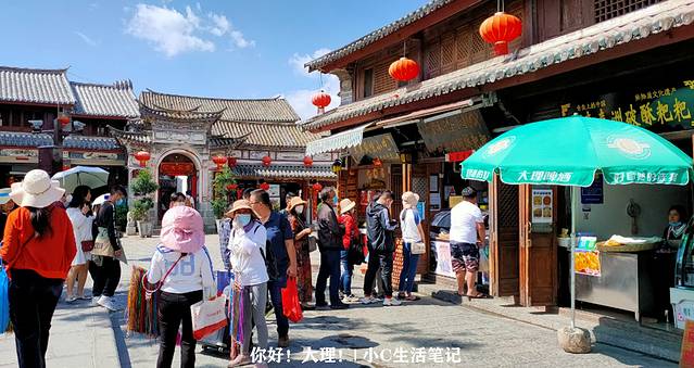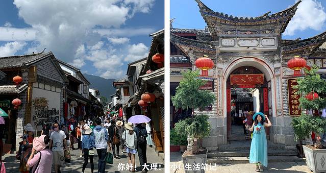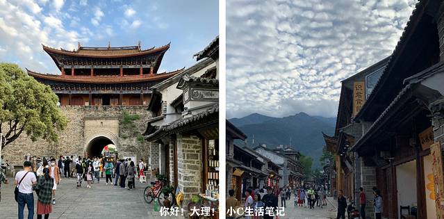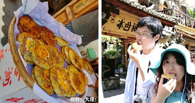 转湖的第一站抵达喜洲,穿过看起来布景版冷清的牌坊,里面竟然藏着一个生龙活虎的小镇,阳光下走走停停的时候,来个喜洲粑粑充当午餐,肉蛋碳水一招搞定。