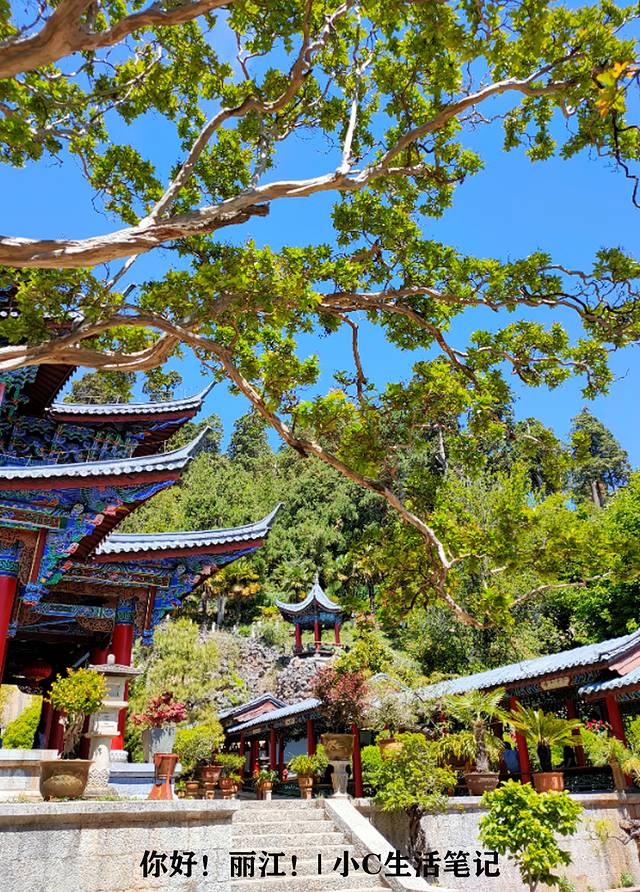 木府作为统治者的宅邸和办公厅,高居古镇山腰。浅色的建筑在明晃晃的阳光和蓝天下,鲜亮风味大于古韵。