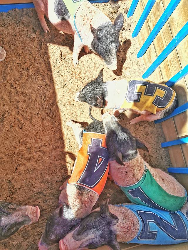 5、小猪赛跑,是一项非常棒的动物互动游戏,即不会伤害动物,又能让小朋友全情投入地参与,小朋友在赶着小猪回圈的过程中,也感受到了竞争和参与的乐趣,虽然最后没有胜出,可跟小猪一起赛跑的有趣回忆,会一直陪伴她长大。