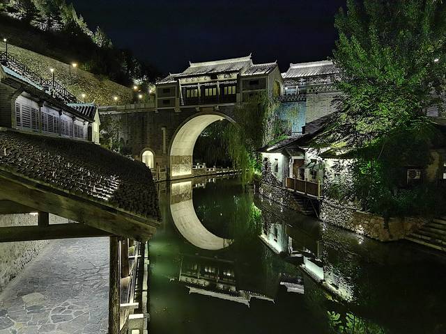 办完酒店入住,我们放下行囊,就开始寻找晚餐的地方,一路走走逛逛,看着三三两两的人群,人不多不少,刚刚好,看着远处天边的圆圆的月亮,心情真是非常舒爽,司马太长城也亮起了灯,蜿蜒曲折,好似讲述着当年烽火的年代,我们住的地区是日月城,附近,