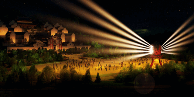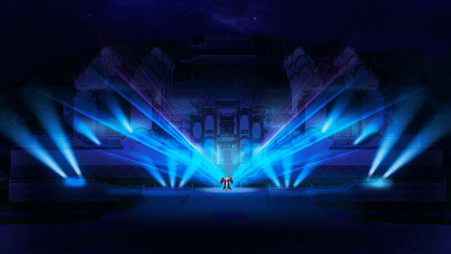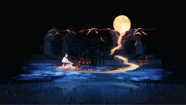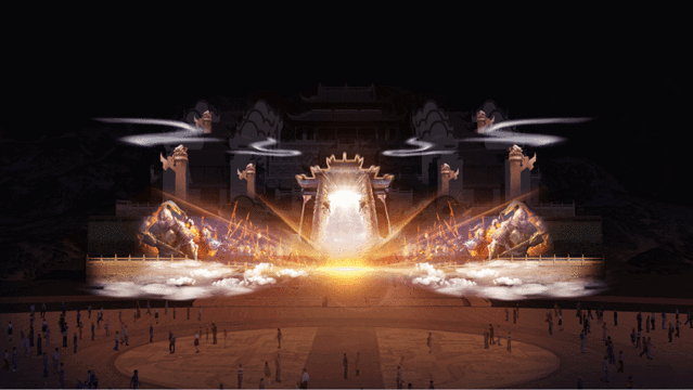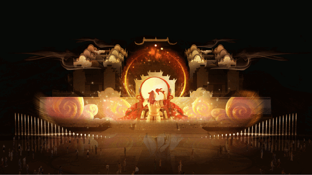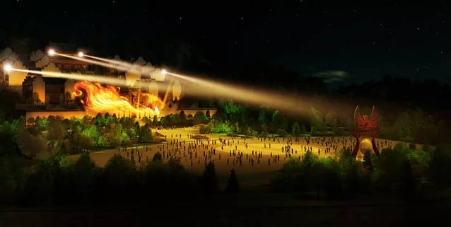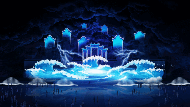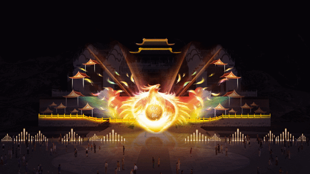 在这里,您可以看到古建筑山门、墙面、屋顶上魔幻的“流体雕塑”;《九歌东君》的天马奔腾,弓射天狼;倾听云中君的千古绝唱与水芭蕾的幻化互动;凤凰传说的离奇故事……梦境、幻觉、遐想、追忆……穿越时空,与唯美楚辞零距离对话与交流,感受前所未有的心灵震撼。