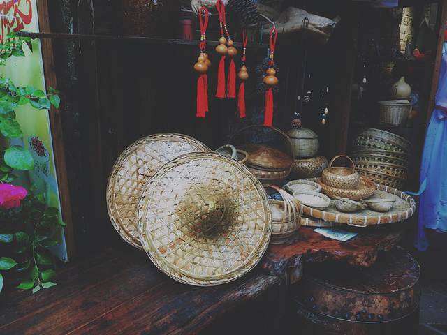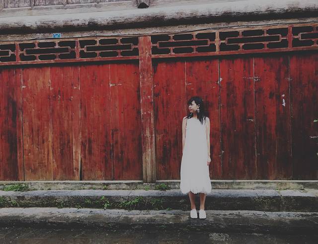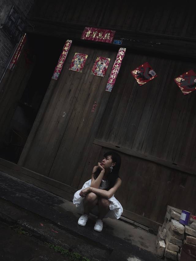 雨中的古镇超级适合这种暗暗的旧旧的滤镜,拍照的时候可以直接把相机亮度调低,就能直接拍出这种感觉来。如果想后期调成这种感觉,可以用美图秀秀的“增强”功能,把亮度和暗度调低,对比度和高光调高,最后加一点点褪色。