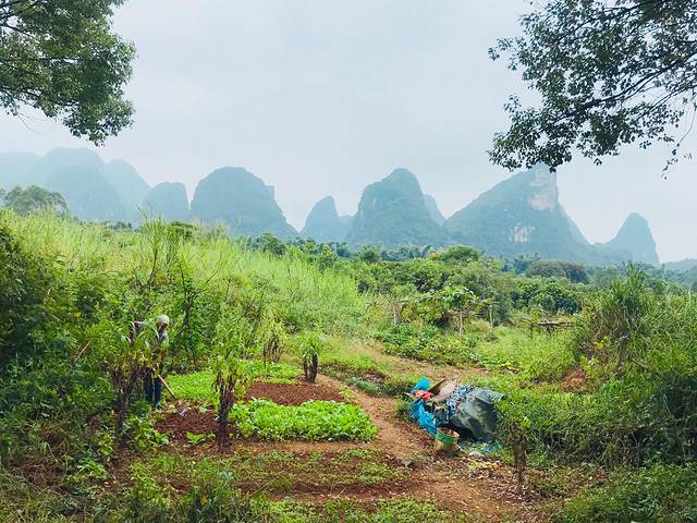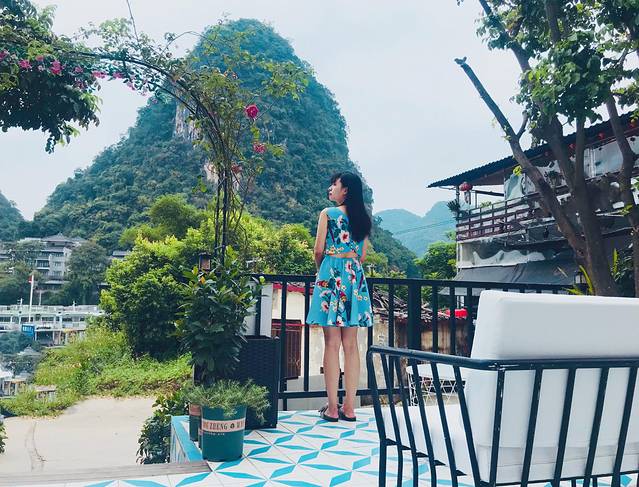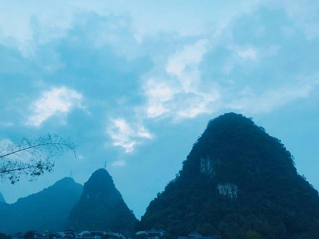 去民宿的路上,就感觉自己的文化水平已经跟不上这边的美景了,除了说“真好看”之外,也不知道怎么形容此时此刻的心情了。而且叶宝宝说了一句“桂林山水甲天下,阳朔山水甲桂林”,她们竟然一致认为后半句是现编的,我也是服气了,哈哈哈。