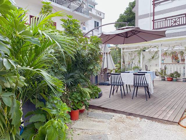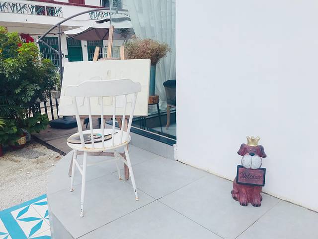 来的时候经过一条小路,说实话看着两边的房子有点旧旧的,还是有点担心会不会跟我想的不一样。直到村子的尽头,一下车就被这个白色的小楼吸引了,院子里种了很多花,干净又清新,简直太喜欢了。