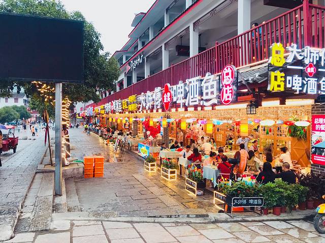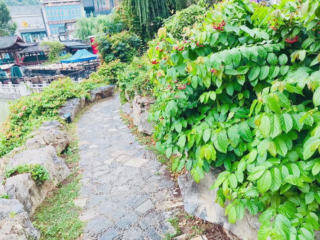 沿着民宿下去走2分钟左右就有船,每个人2块钱,二三分钟就到河对面了。下了船之后大概走10分钟左右,就可以到达西街美食街。