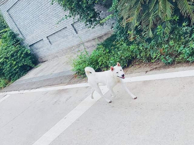 偶遇两只可爱的汪星人,这两个小家伙太上镜了。尤其是这只小白,大老远就看到它特别欢快的一路小跑,这笑容也是相当治愈了。