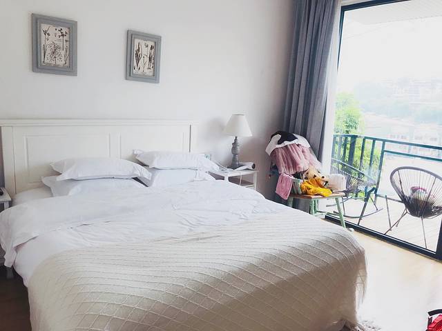 房间正对面就有山有水的,坐在小阳台上,看着远处的风景,心一下就静了。晚上再来瓶小酒,放首喜欢的音乐,吹着凉凉的晚风,看看满天的繁星,简直太治愈了。可惜我们来的时候天气不好,满天的繁星变成了淅淅沥沥的小雨,又是另一种感受。