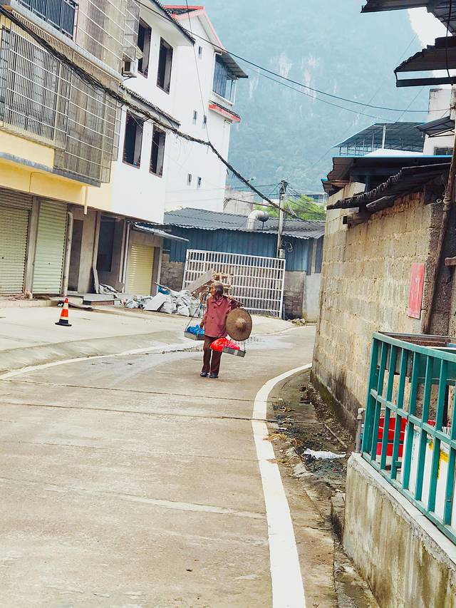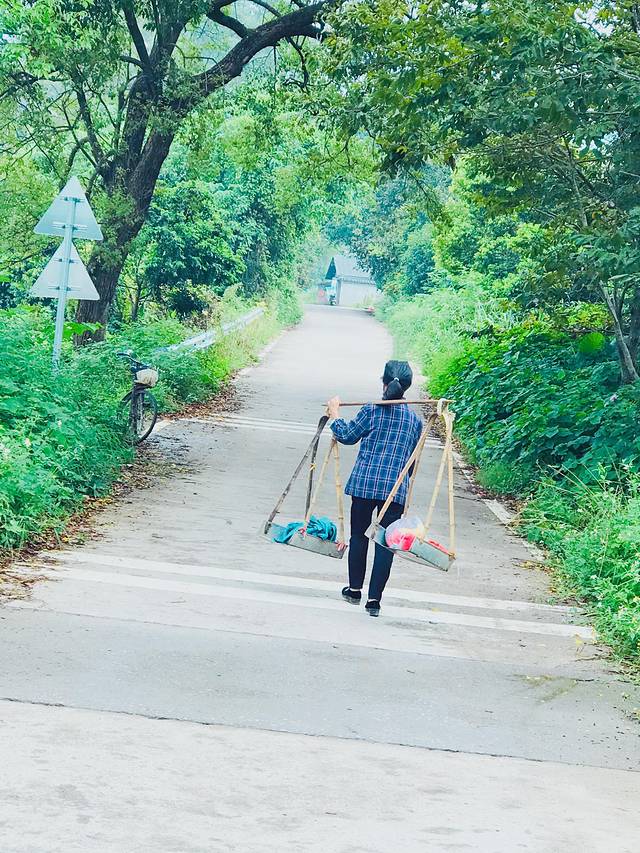 遇到好几个这样挑着担子的阿姨或者奶奶,很好奇里面是什么,但是她们说话我有点听不太懂,还没彻底睡醒,眼神也不好使,看不清楚,哈哈。