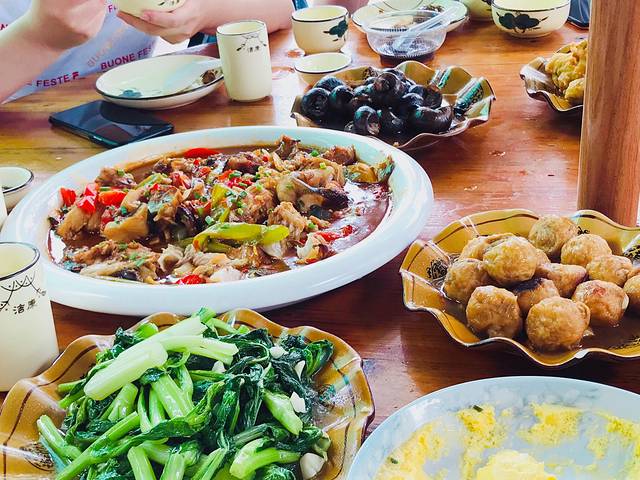 中午本来想去隔壁的餐厅吃饭,但是菜价真的太贵了,店里的姐姐也不建议我们在那吃。于是外卖点了这家“凤美啤酒鱼”小炒,直接坐在院子里开吃,太幸福了。