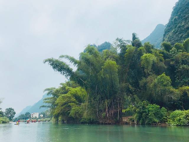 这一段路被称作是最美的,而且竹筏也是人工的,255元/个竹筏,可以坐2个人,路程大约是1个半小时。1米以上的儿童是不可以乘坐的哦。可怜的花花只能抱着小花生先到终点等我们了。