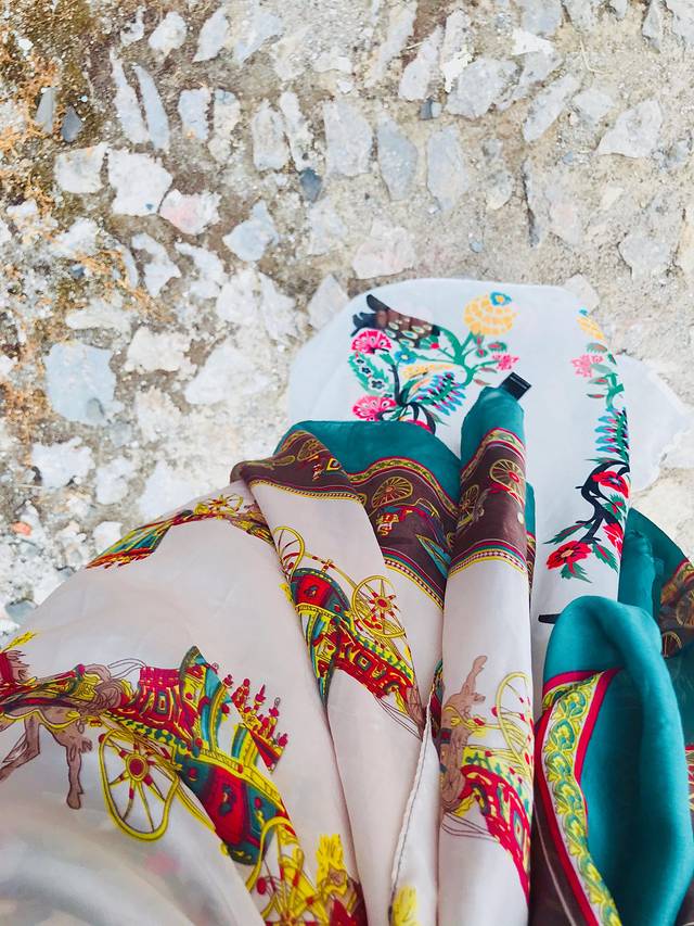 大莹子这条纱巾,已经完美和我的裙子融为一体,甚至还系出了一种民族风的效果,哈哈。