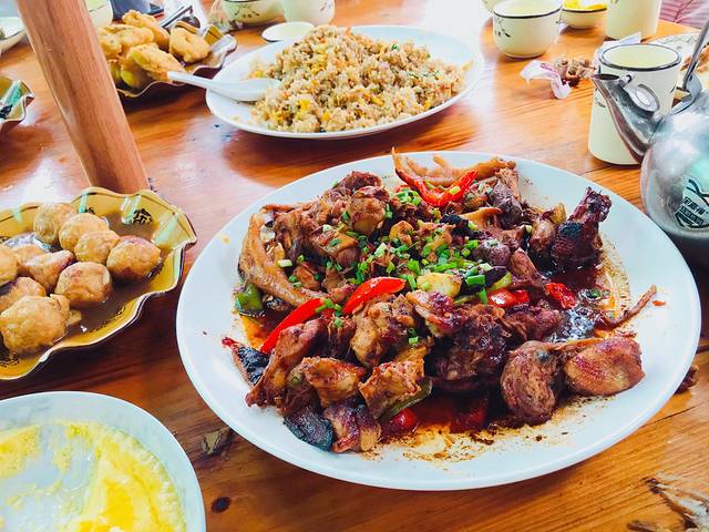黄焖鸡也是这边的特色,应该是家里养的走地鸡,老板说都是当天现杀的,就是肉稍微有点嚼不动,有点费牙,哈哈哈。