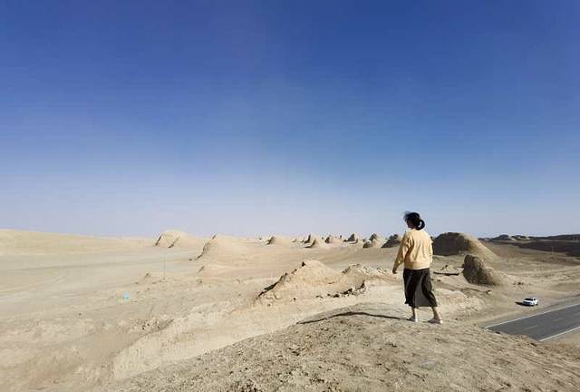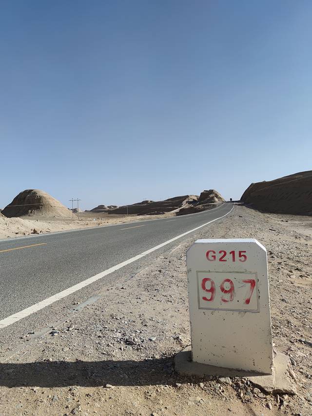 途中经过G215,这条公路拍照好看,车比较少,因为属于无人区,信号会不好,提前做好路线规划。不亲自抵达可能永远体会不到她有多壮阔,曾在国家地理杂志上看过很多雅丹地貌的照片,当亲自踏足这片土地,还是会被眼前的一切所震撼,方圆百公里不见一草一
